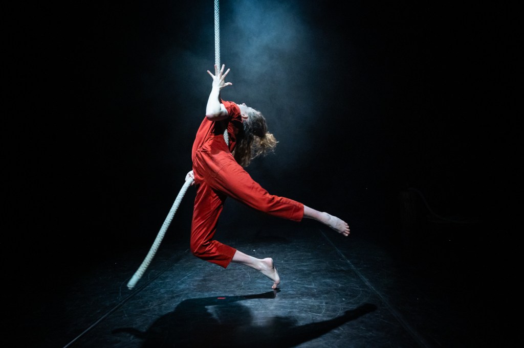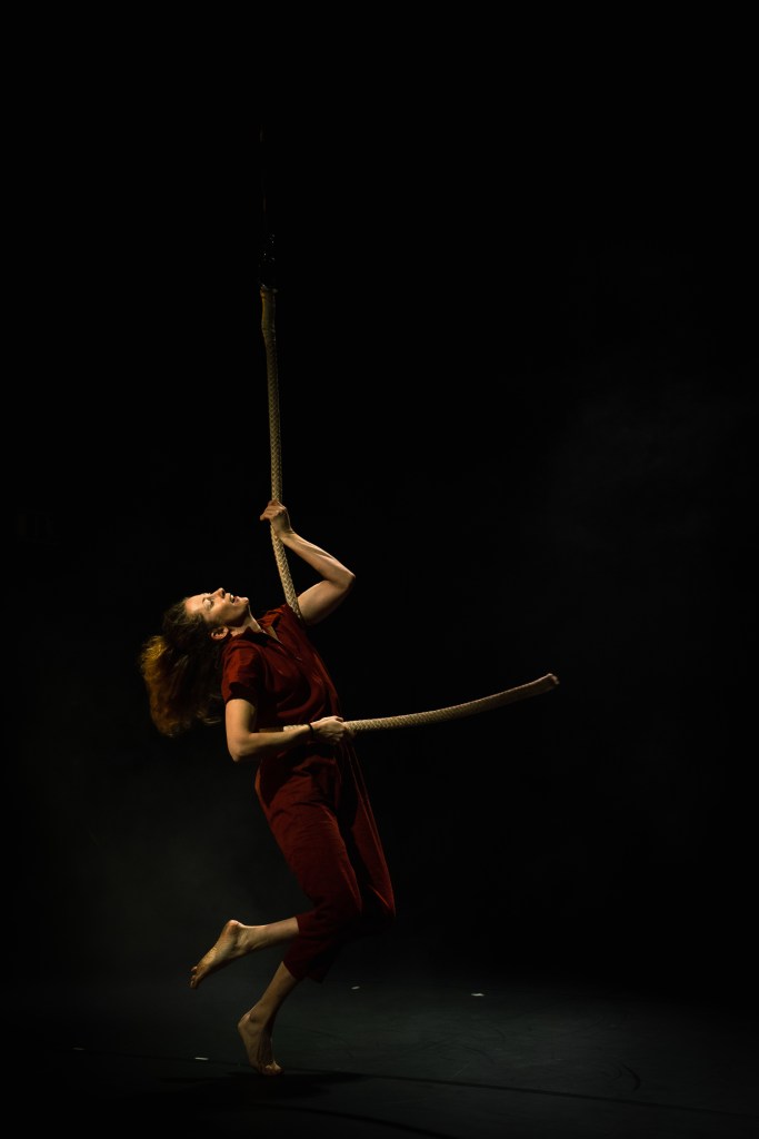 Ce qui a poussé Viivi à créer son premier solo, c’est le choix de raccourcir sa corde ouvrant ainsi un nouveau champ des possibles : un plus grand vide et un autre rapport au sol. Sur une scène épurée, seule avec sa partenaire de toujours, elle donne à voir des moments de gloire, d’échec, de joie et de solitude nous rappelant la multiplicité des émotions qui façonnent nos vies.
