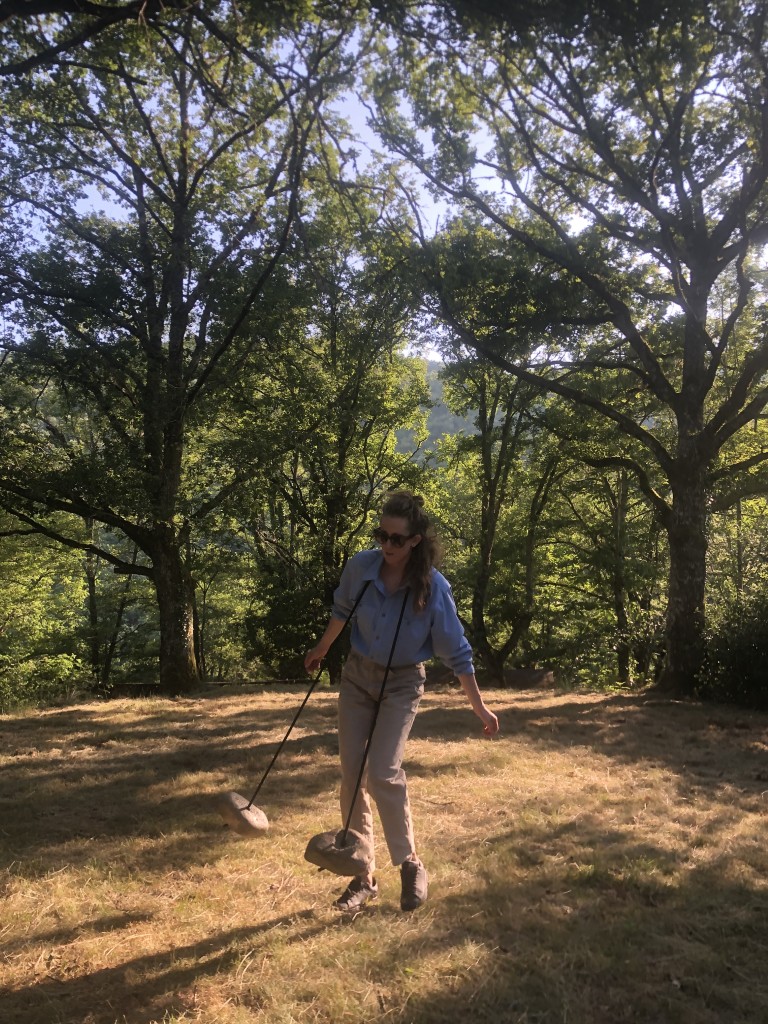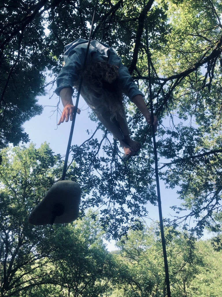 L’acrobate aérienne Viivi Roiha développe dans Willow une recherche au sol avec deux pierres reliées par une corde et dans l’air avec trois pierres suspendues.